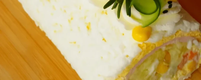 - Servis yapmadan önce ruloyu bir kat krem peynirle kaplayın ve salatalık, yumurta sarısı kırıntıları veya otlarla süsleyin.